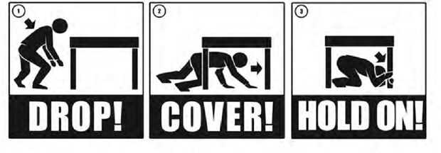 - Si no puede encontrar una estructura robusta que le rodean, cubre su cabeza y cuello con las manos lo mejor que podáis.