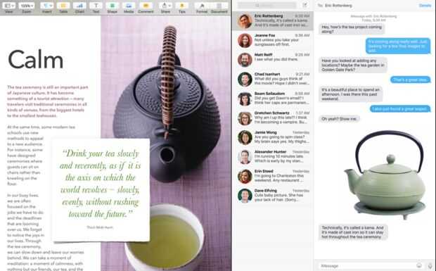 La principal mejora es la nueva forma de ver entre las aplicaciones - vista dividida. En El Capitan que puede trabajar en dos aplicaciones al mismo tiempo sin distracciones, que hace su trabajo más productivo. Ya mismo en OS X Yosemite lo puede hacer manualmente, arrastrando el windows y tratando de separar correctamente y llenar la pantalla verticalmente.