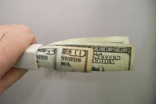 3) deslice en el dinero. * Nota: doblar el dinero en un rectángulo, utilice un clip para mantener bien cerrada.