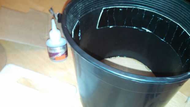 cortar una tira ancha de pulgadas de cartulina y pégala alrededor del interior del envase 2 pulgadas hacia abajo así la tapa puede estar en él.