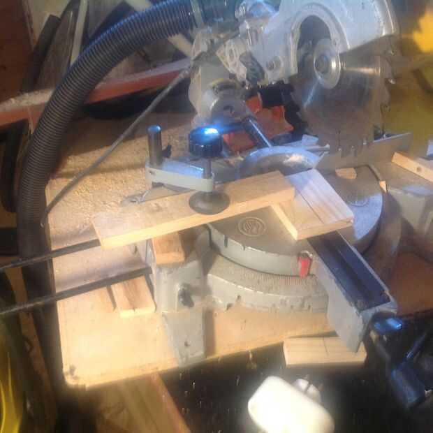 cuando tienes que cortar un trozo pequeño en la sierra, esta es una manera fácil para mantener las manos fuera del camino de la blad, tienes una buena oportunidad para fijar la pieza en una posición correcta. Don te olvides de dejar la sierra deje de girar, antes de que levante la sierra, de lo contrario te kan tiene una pieza de madera dejando la sierra como un proyectil. Lo que casi consiguieran pulsados de uno.