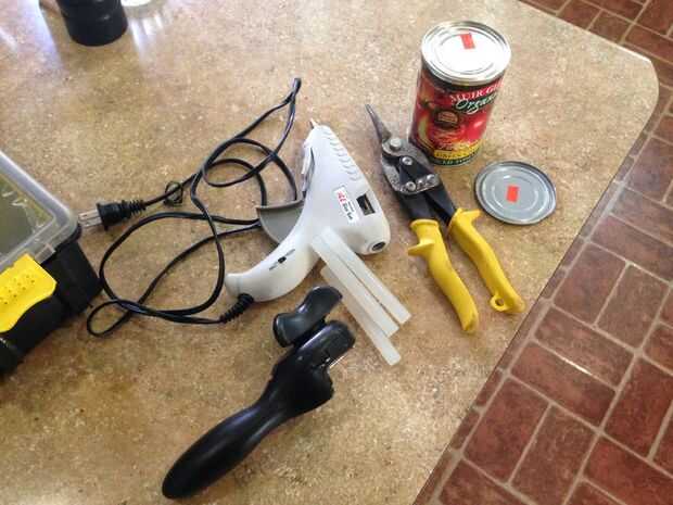 2 latas de sopa (Asegúrese de que la parte superior e inferior de la sopa de latas parecen similares en estilo. De esta manera puede abrir fácilmente el fondo de la lata)