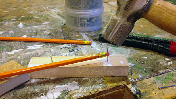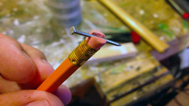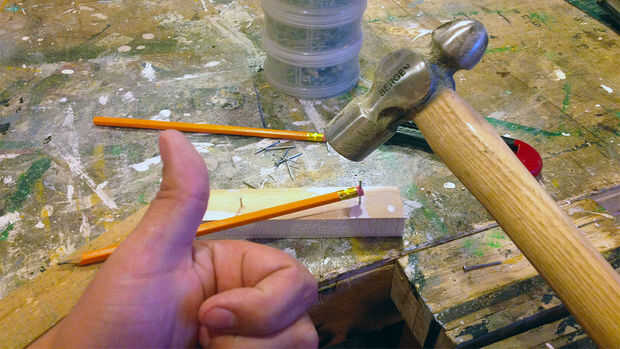 Todo lo que necesita para este seguro martillo y clavo hack es un lápiz con una goma en el extremo.