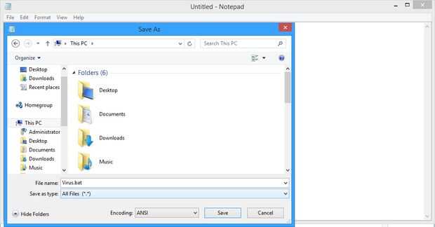 Haga clic en "Archivo" -> "Guardar" y elija "Todos los archivos" en el menú.