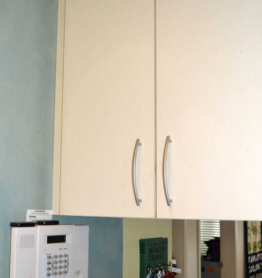 Un amigo que vivía a través de un fuerte terremoto en sur de California se quejaba de que uno de los peores escenarios en su casa era todas las cosas fuera de sus gabinetes de cocina - aceite de cocina, vinagre de vino, - todas mezcladas con vajilla y vidrios rotos. ¿Sin duda, podría pinchar un trozo de madera a través de los tirones de la puerta pero lo feo e incómodo sería? Quería un dispositivo que puede operarse con una mano y tenía un impacto visual mínimo. Esto es lo que se me ocurrió...