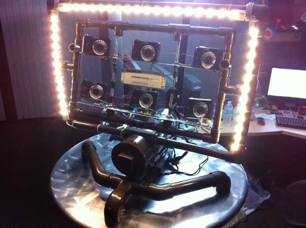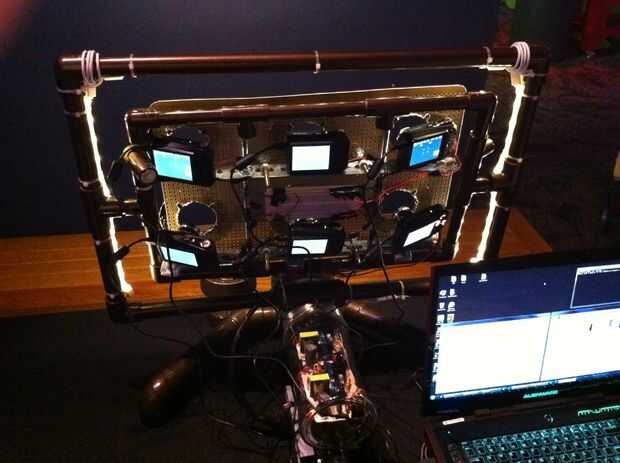 Desde ya cintura profundamente en el mundo de la fotogrametría en el trabajo (la reconstrucción de los datos 3D de fotografías), decidí construir una plataforma de cámara para capturar los rostros de los visitantes (principalmente niños). Ahora si usted tiene niños, o ha visto alguna vez un niño en la TV, ya sabes que muy raramente se sientan todavía durante más de 0,25 segundos a menos que están durmiendo o en un Elmo-inducida trance hipnótico... aunque incluso que dura sólo unos 0,58 segundos. ¿Cómo, entonces, pueden los niños ser fotografiados desde varios ángulos simultáneamente?
