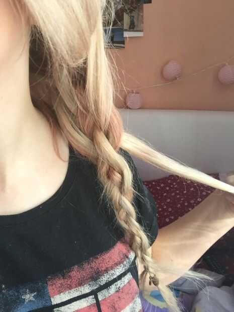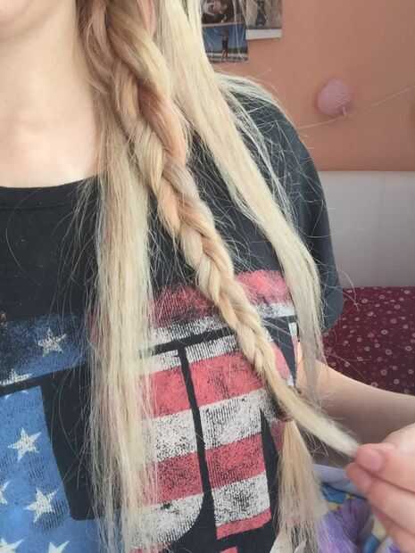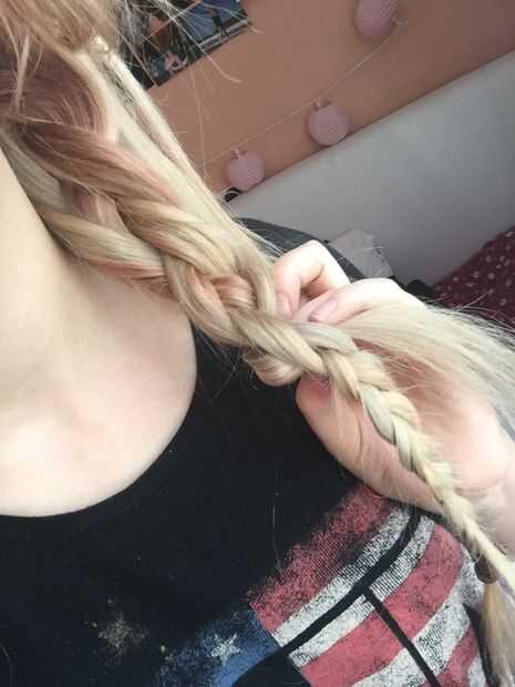 Tome el medio pedazo de pelo de las 3 secciones y empuje por en medio de la trenza que se muestra en la primera imagen.