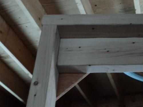 Estos dos son clavados o atornillados y pegados si usted elige utilizar el pegamento. En este momento la barra superior se extenderá una pulgada y media en cada extremo.