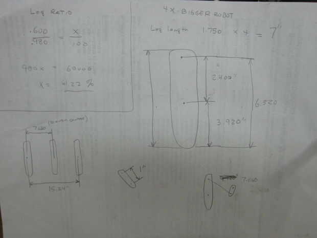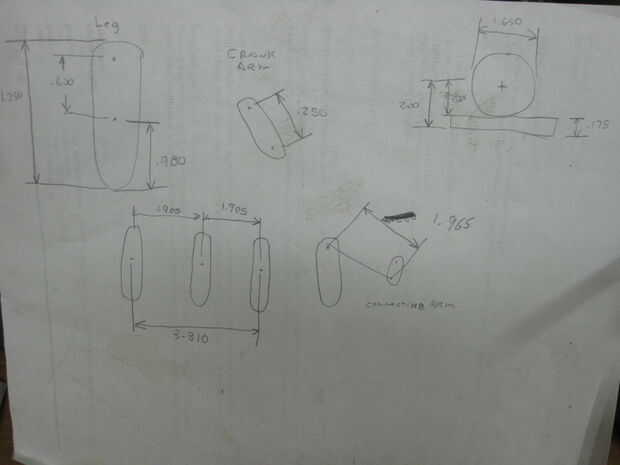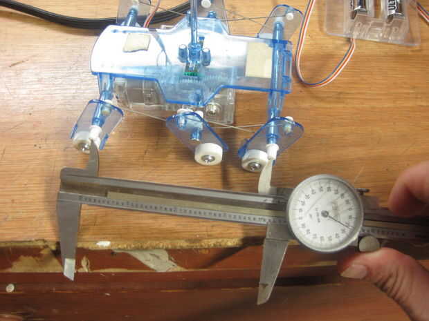 Así que lo que hice es - lo mejor posible, usando un par de disco pinzas – fue medir todas las longitudes de todos los componentes. Entonces medí todos otra vez, entonces medí les todo otra vez. Mis medidas creo que están cercanas pero no es 100% exacta. Desde que era balling ojo algunos lo que hice es tomar dos o tres medidas del mismo elemento y un promedio de las longitudes. Algunas de las medidas más fáciles que hice varias veces terminé con la misma distancia. Para todo lo que estaba, me preguntaba qué sucedería cuando multiplique la inexactitud – enlazar las piernas, caen o no andar en todo.