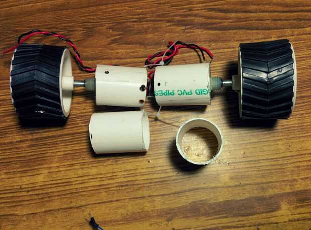 - Ajuste motores en tubo de PVC que son agujeros en el lado interno.