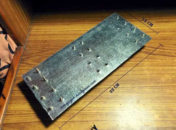 - Cortar la hoja de aluminio 32 x 12 cm.
