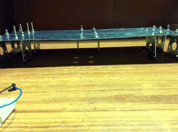 - Coloque dos L en forma de soportes de motor en Al hoja y marca las posiciones que el motor se ajusta sólo.