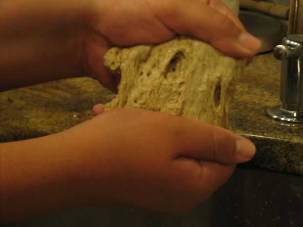 Una vez que hacia 10 repeticiones del proceso de llenado-lavado-descarga, notarás poco duros piezas de lavado de la masa. Este es el salvado, y a menos que realmente desee la fibra añadida, se debe lavar probablemente hacia fuera.