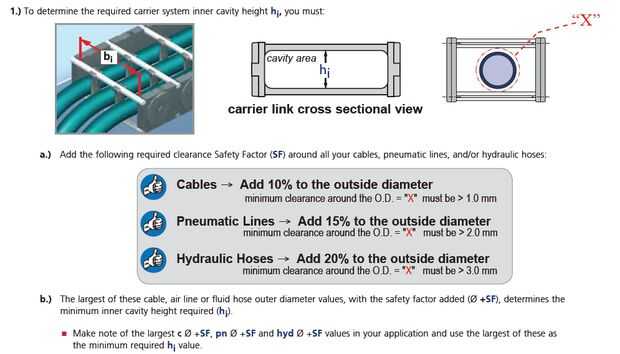 El más grande de estos cable, línea de aire o valores de diámetro externo de manguera de fluido, con el factor de seguridad añadido (Ø + SF), determina la cavidad altura mínima necesaria (Hola)