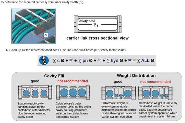 Para determinar si el transportista requiere sistema cavidad interna ancho Bi es suficiente. Utilizar la fórmula en la segunda imagen. Para un portador ideal: suma de cables, líneas aéreas y las mangueras hidráulicas más seguridad allí factor.