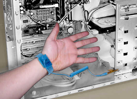 Me doy cuenta que la mayoría de ustedes no tiene una estera ESD así recomiendo que tierra la caja del ordenador a la toma de tierra de la tierra con un enchufe de plátano de un DMM o Radio Shack y utilice una correa de muñeca ESD.