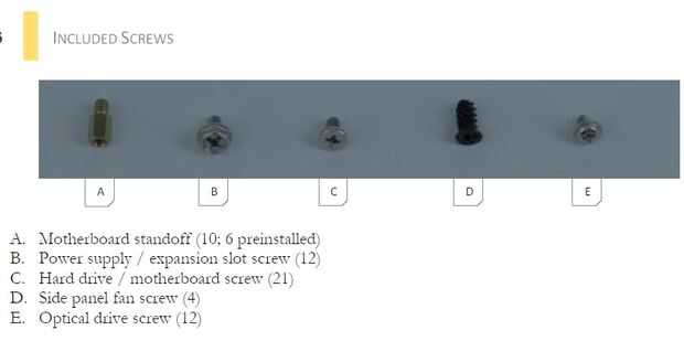 Su caso PC probablemente tendrá un manual de instrucciones. Mina estaba disponible. Generalmente el primer paso es instalar la fuente de alimentación en el caso. Este manual también tenía una imagen agradable de los tornillos varios, como con el caso y lo que se utilizan para. (Ver imagen).
