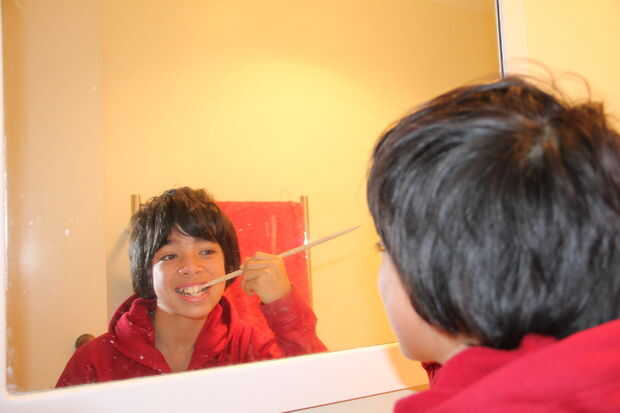 esto es lo que usted tendrá que hacer un cepillo de dientes gigante:Revestimiento de espuma, pintura acrílica, pinceles, una pistola de pegamento caliente, una herramienta suavizadora superficial (como un rallador de queso), un cuchillo del exacto, u