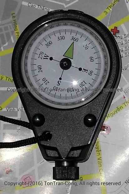 Figura 1.2.3: Una brújula simple, plástico basada en las brújulas Suunto para touring. Tenga en cuenta que esta brújula imitación puede ser tan duradero ni tan fiable como el genuino.
