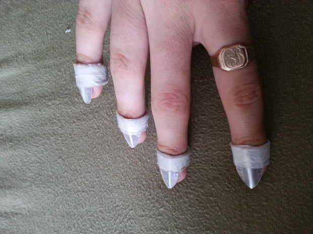 Las selecciones han sido de gran ayuda para mi juego me dando claridad y tono junto con la libertad de la preocupación acerca de un split o uña astillada. Plan de experimentar con los diferentes plásticos como pelotas de ping pong y jarras de leche a ver que es más cercano al tono de la uña natural todos, pero por ahora esto es una herramienta invaluable.
