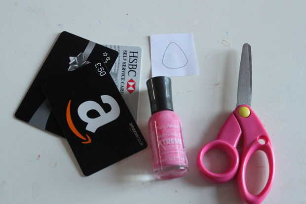 en este instructable mal enseñarle a hacer sus propias selecciones de la guitarra de regalo o tarjetas de créditoahora no tienes que conducir sobre a tu tienda de música sólo para conseguir frigging selecciones!barato, fácil y rápidono ha inventado e