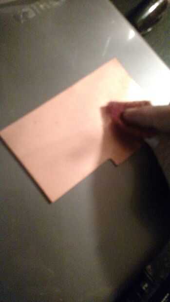 Esto es muy simple. Toma el cobre revestido y un trozo de almohadilla Scotch Brite (o papel de lija muy fina) y del desgaste por el cobre revestido donde desea colocar la imagen.