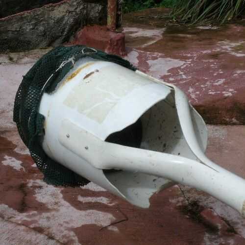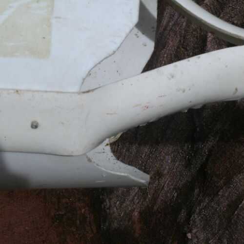 La profundidad de la cubeta era más de necesario para coger la fruta. En lugar de cortar la parte inferior en línea recta, corte con la línea ondulada que se muestra. Esto me deja montar el mango superior en el cubo y también me deja utilizar la línea ondulada como una especie de gancho para colgar el selector de una tubería horizontal de arriba en mi tienda para el almacenamiento.