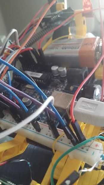 El conductor del motor de tomar el poder directamente forma la batería así que no tiene que conectar alimentación de arduino con ella (me refiero a 5V forman el arduino), pero tenemos 6 cables para su control, 3 para cada motor, uno para enviar la señal PWM para el control de la velocidad del motor y para indicar la dirección que queremos que el motor gire.