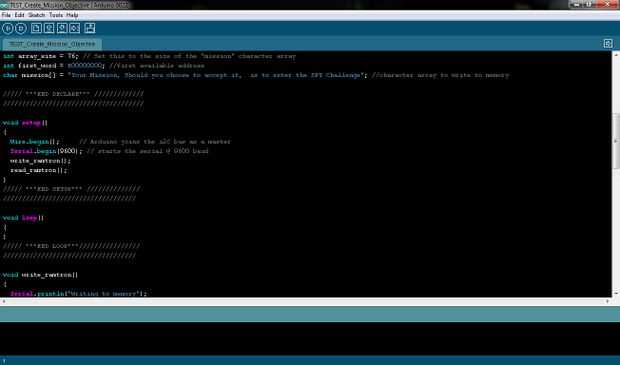 A continuación es probar la pantalla OLED. Para ello, abra el dibujo de "Self_destructing_msg" y subirlo a la Arduino. Cuando se hace cargando, debería ver un logo rebotando en la pantalla. La pantalla está funcionando correctamente. Si no, verifique todas las conexiones de la pantalla.