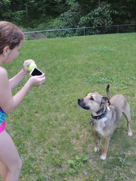 Antes de empezar a ajustar fotos, cosas una pelota de tenis extra en su bolsillo. En una sesión de fotos es un montón de trabajo (especialmente para un perro!) Un buen modelo necesita una recompensa y un descanso! Me O'Mally hacer algunas poses y luego le dio la bola extra para jugar fetch durante unos minutos. Este descanso es necesario para tu cachorro. Perros necesitan una recompensa si quiere seguir siendo obediente en el futuro y sé que desea mantener ajustar esas fotos/autorretratos! ¡ Esperamos que hayan disfrutado este instructable y hacer un perro Selfie accesorio para ti! Es muy fácil no!