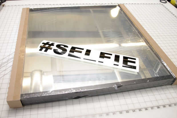 Para hacer esto todo lo que se requiere es uno de esos cuadrados que espejos de Ikea de madera y el archivo de plantilla #SELFIE adjunto.
