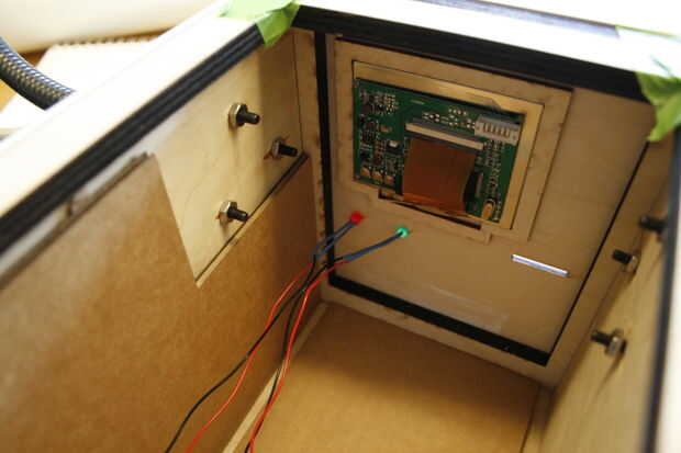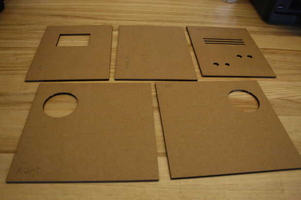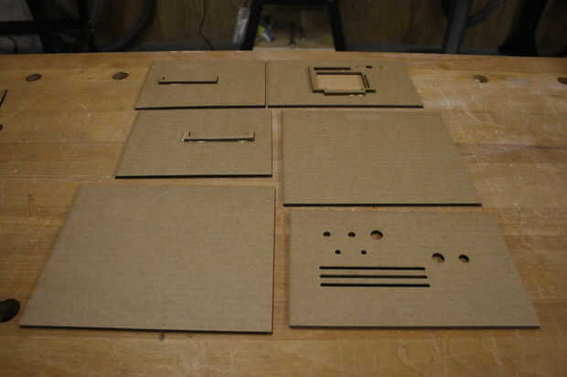 Pasé las cargas de tiempo en este paso. La placa posterior es necesaria para adaptarse a la electrónica: los botones y LEDs. Cartón de corte por láser era rápida y barata, así que horas de iteración fueron-bien vale la pena.