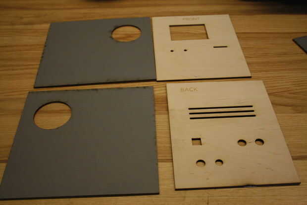 Basado en los prototipos de cartón, lasercut los paneles. Ya que fueron pintados antes de cortar, tuve que ser súper cuidadoso para que los cortes bien.