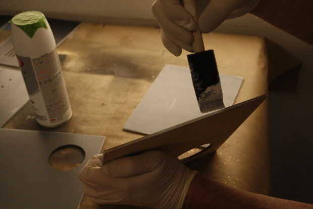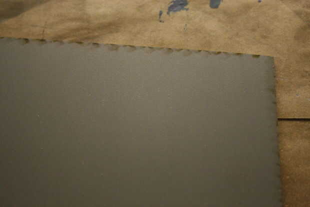 Pinté los bordes blancos, poniendo primero una capa de imprimación. También hice retoques en las marcas de quemadura extra en el gris.