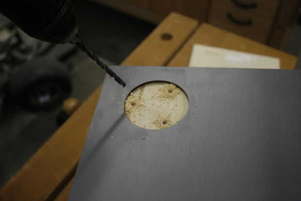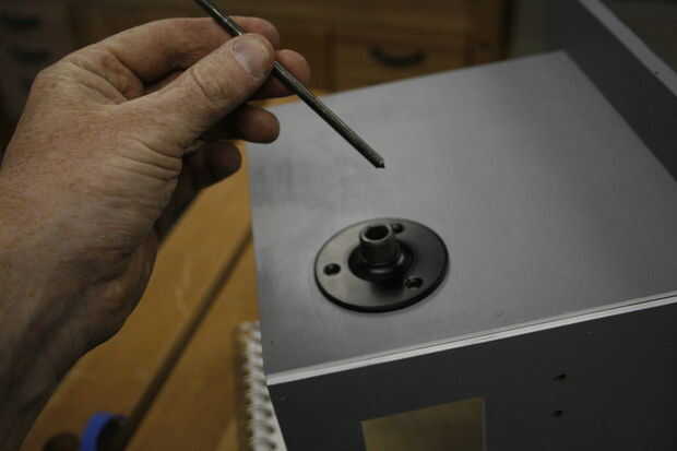SelfiesBot tiene brazos gigantes, como se puede ver en la imagen. Os les adjunto con este pedazo de tornillo-en el micrófono que tiene coincidencia de hilos. Con un punzón de transferencia, marcados los agujeros, perforados hacia fuera y luego atornillados a través.