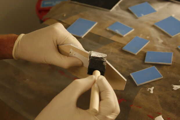 Limpiar los bordes con la lijadora de banda, entonces utiliza la pintura blanca para los bordes. Hice retoques con pintura para las caras.