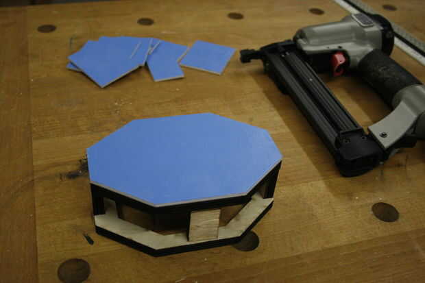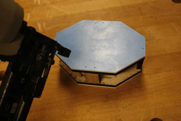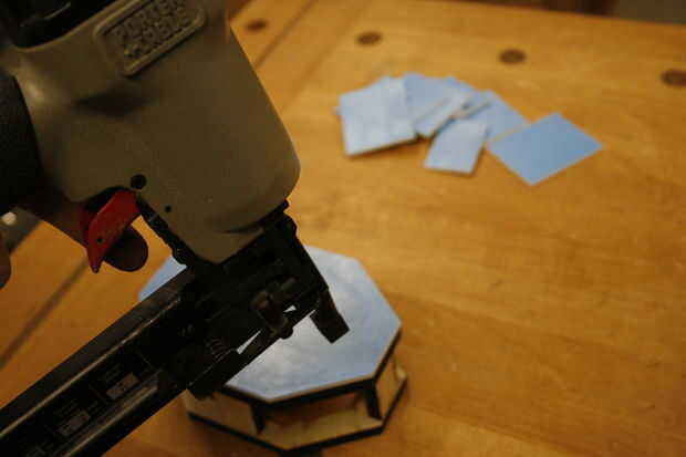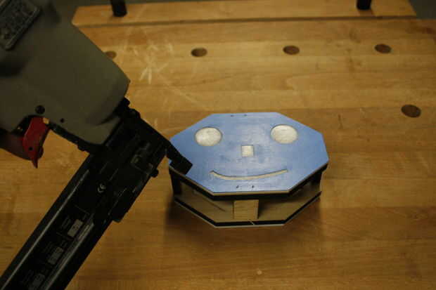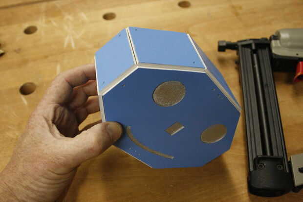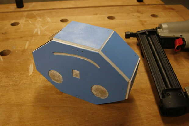 Até con cuidado los paneles de la cabeza a la armadura con el clavador de cerebro. El aspecto crucial es obtener líneas limpias entre la parte delantera de la cabeza (cara) y sus vecinos paneles, ya que esto es lo que aparece en cada fotografía Twitter por SelfiesBot.