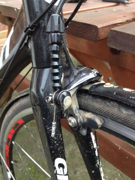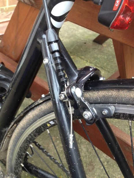 Como última cosa he puesto goma guardapolvos de frenos V-BRAKE en una rosca de ajuste, y que cubre la última parte expuesta del cable interno (fotos 5, 6, 7, 8).