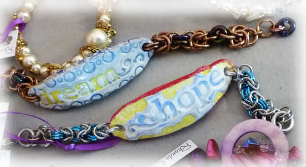 Añadir anillas, cuerdas, cables etc. para hacer su propia joyería OOAK del oído. Arriba, he añadido cadena maille a mi esperanza y sueño focals para hacer pulseras.