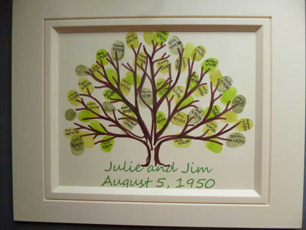 Para su regalo de Navidad, coordino un árbol visual con la única huella digital, firma y fecha de nacimiento de cada miembro de la familia.