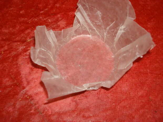 y torcido alrededor para formar un círculo. Luego corté la parte superior del papel por lo que era más corto y estallaron hacia fuera los bordes permitiendo suficiente profundidad sostener la cera. Esto hizo un círculo incluso agradable pero era un poco más difícil de quitar el sello de la cera cuando seca. Me ha gustado este método mejor que verter la cera en un pedazo plano de papel de cera. El beneficio del uso de papel de cera es: Si el molde no resultan se puede pelar apagado el papel encerado y volver a calentarlo.