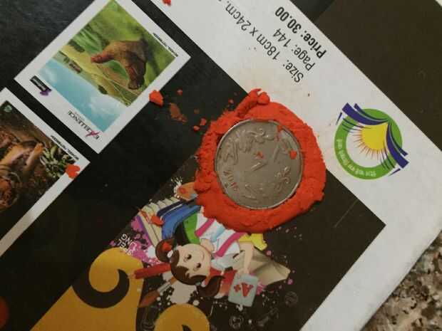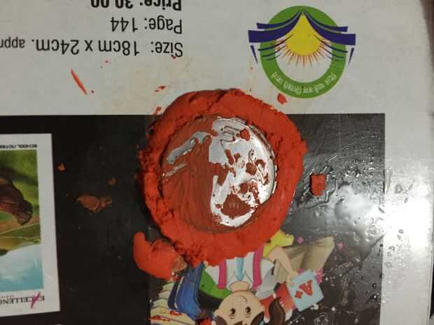 Traté de calentar la cera con mechero directamente, pero resultó en dedo quemado leve. Además no hizo una impresión fuerte. Entonces busqué en Google un poco poco y encontró la idea de usar una cuchara.