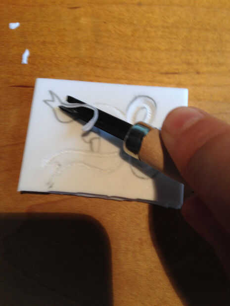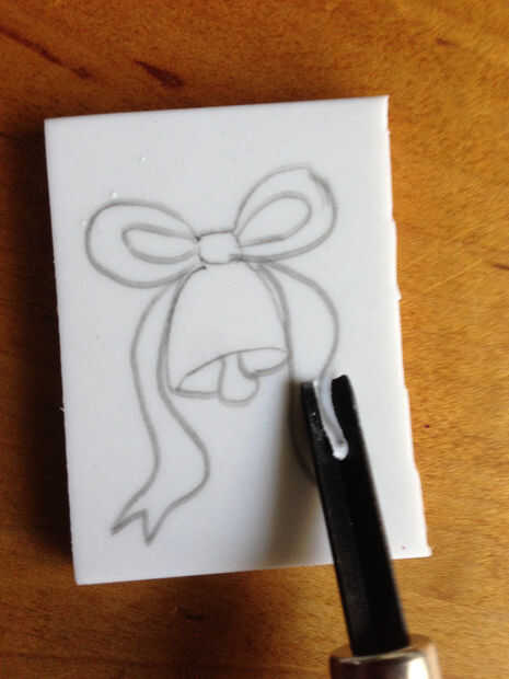 Ahora, antes de cortarlos, decidir qué partes de su sello que quieres ser en tinta y que partes el papel para mostrar a través de. Si está haciendo un corazón por ejemplo, puede hacerse con el corazón y todo el espacio en su interior, solo tallar el contorno o labrar el fondo. Recuerde que la parte no tallar es la parte que se muestran cuando se estampa y tallar siempre lejos de usted.