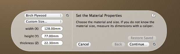 Si bloque de linóleo no es un elemento preestablecido en Otherplan, elija el bloque de madera como el tipo de material y seleccione tamaño personalizado. A continuación las dimensiones del bloque de linóleo se utilizan en este tutorial, pero ser seguro de doble cheque su propio bloque al usarlo.