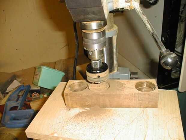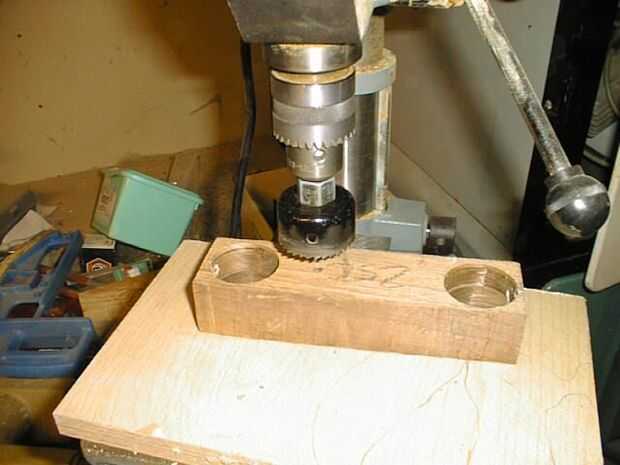 Utilizar el orificio piloto para iniciar la sierra, bajando en cuanto sea posible y lubricantes con cera de abejas. La profundidad del agujero de la sierra debe ser más de la mitad del espesor de la madera, de lo contrario no será capaz de salir del cilindro sin tener que recurrir a una sierra de cinta o algo similar.