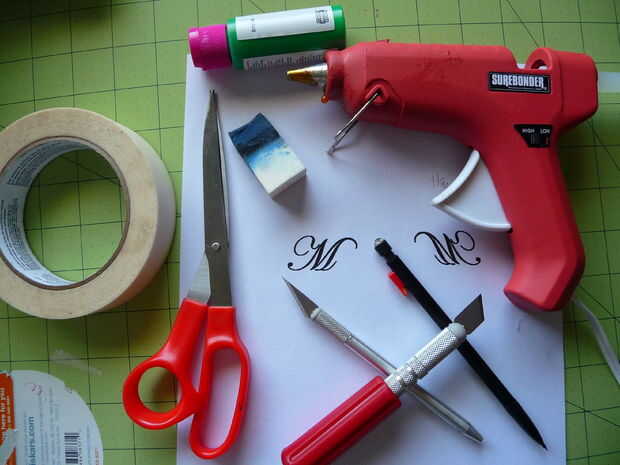 3. caliente la pistola de pegamento y pegamento (stick'n un poco se muestra, de la parte posterior de la pistola _ )