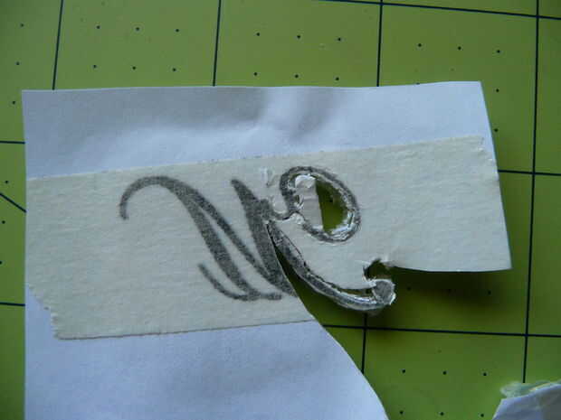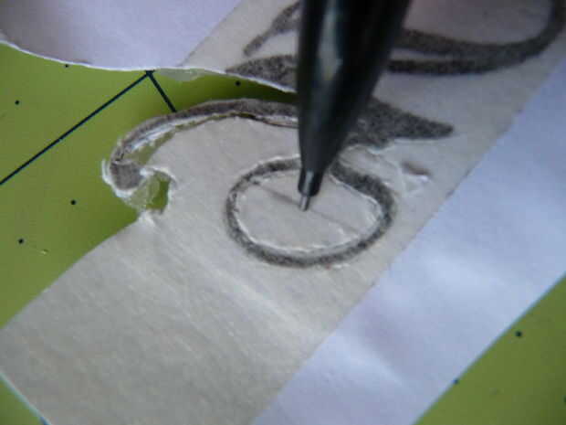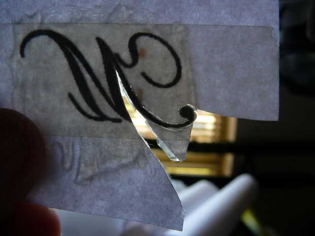 ahora en real trucos xP lo que vas a querer hacer es cortar en segmentos, lo que quiero decir con esto es no tratar de cortar la letra entera, corte alittle bit y sacar cuidadosamente, incluso puedes cortar ese trozo por la mitad para que sea más manejable. Un buen ejemplo de esto está en el cuadro donde corte el centro de lo lujo circular hacia fuera (ver imagen)