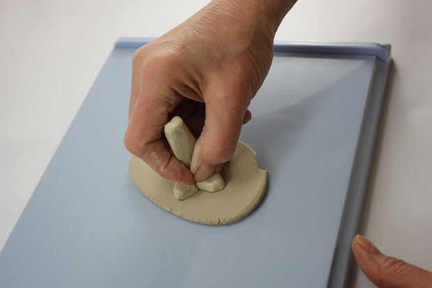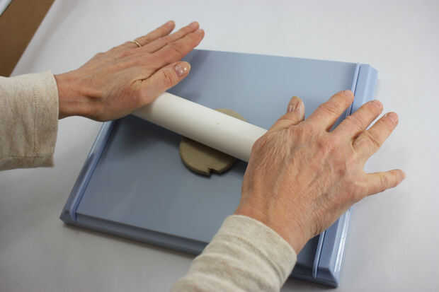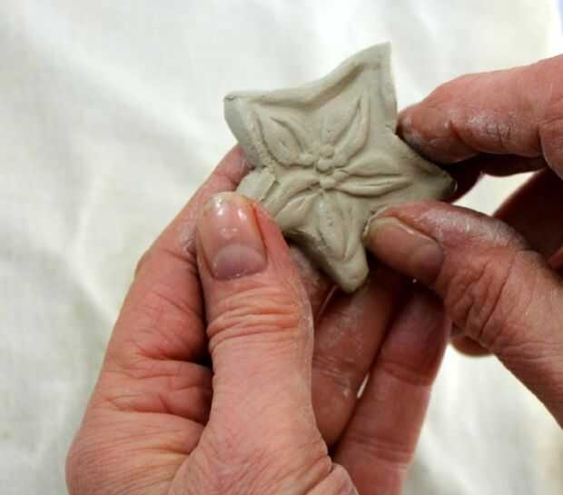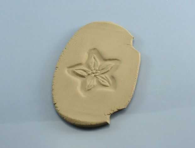 Rodar un poco más de aire seco de la arcilla. Sello de la arcilla. Ahora tiene una impronta de su sello de arcilla.