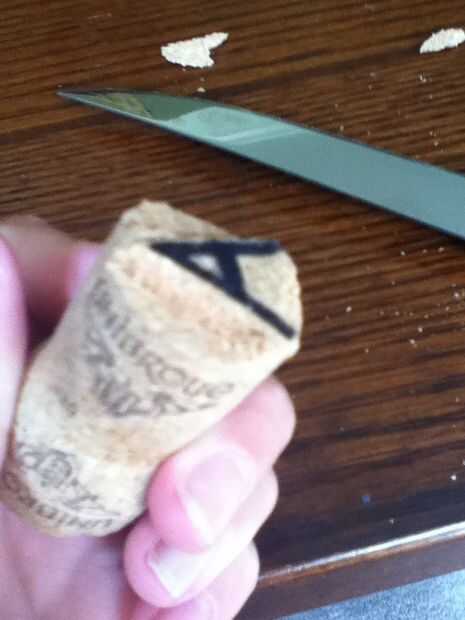 Este paso debe hacerse con supervisión de un adulto para personas 10-. Dibuja lo que vas a tallar hacia fuera sobre el corcho. Ya que hice un un - tuve que cortar alrededor de los bordes. Hacerlo desde el exterior del corcho. Como se muestra arriba. Una vez que han cortado lo mejor posible, necesita sacar los pedazos de corcho.