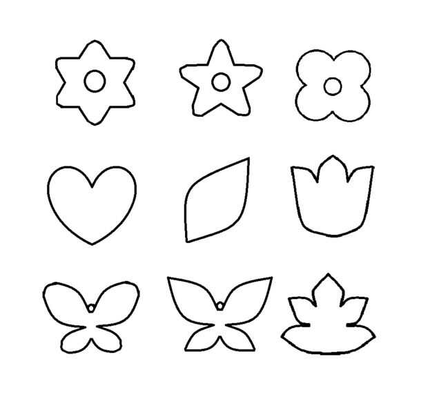 Aquí es una plantilla de los patrones que utilicé para los sellos de espuma de poliestireno. Hice sellos forma de cartón para no ir con las formas básicas esta vez. Opté por usar simples flores, hojas, patrones de corazón.